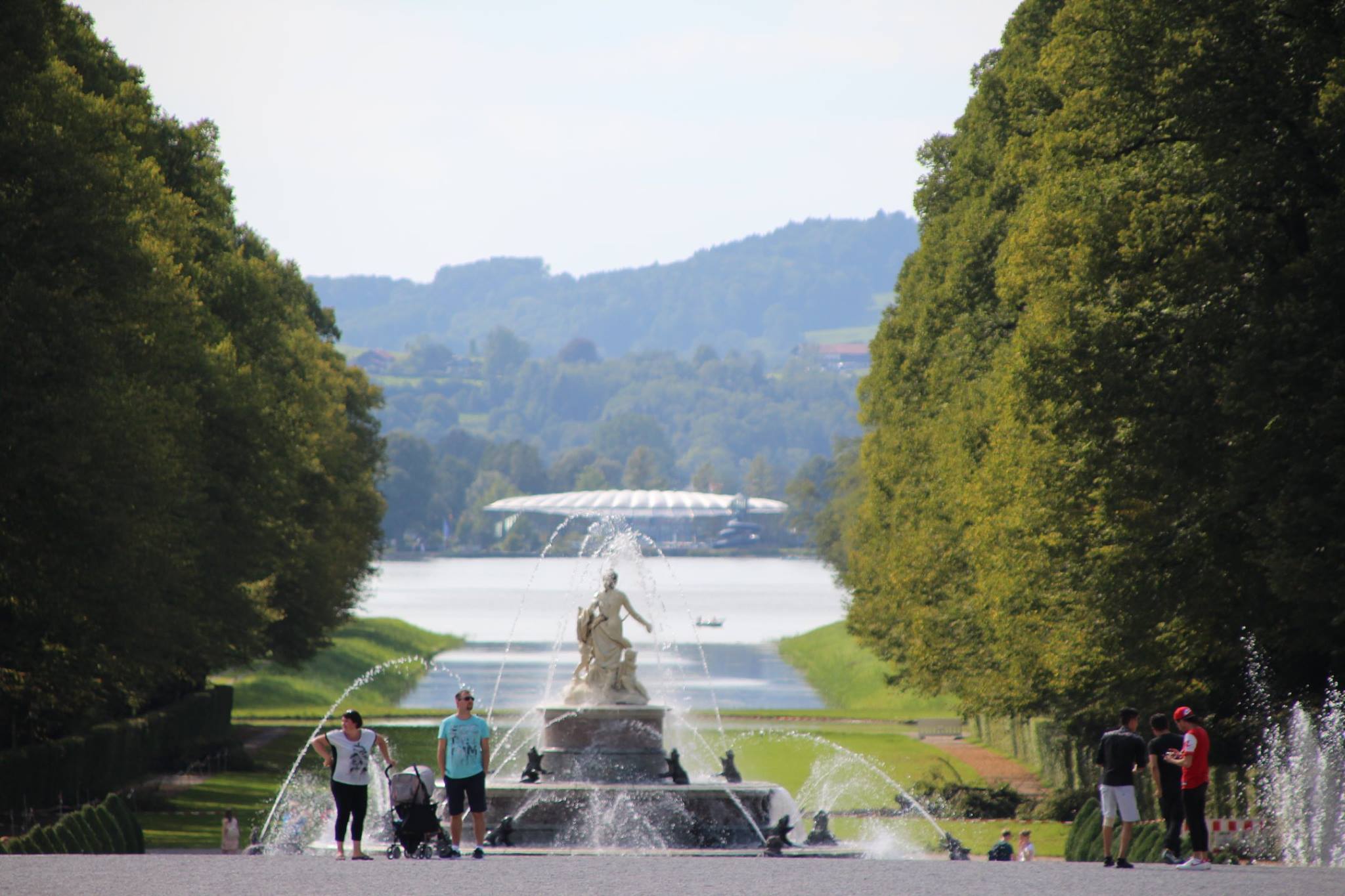 Jezioro Chiemsee to trzecie co do wielkości jezioro Niemiec, często nazywane Morzem Bawarskim. Na jeziorze znajdują się trzy wyspy- dwie zamieszkałe- Wyspa Mężczyzn i Wyspa Kobiet oraz jedna dzika. Wyruszamy statkiem z Prien podziwiając widoki. Pierwszy etap podróży to wyspa mężczyzn- Herreninsel. Na wyspie Ludwik II Szalony-król Bawarii postanowił wybudować sobie jeden z trzech wymyślonych przez niego zamków. Dwa z nich – Neuschwanstein oraz Linderhof zwiedzaliśmy dwa lata temu (kilka zdjęć załączam dla zachęty). Pierwszy z nich jest ukazany na początku każdego filmu Disney’a- bajkowy i tyle. Drugi zaskakuje rozwiązaniami technicznymi. A ten na wyspie miał ukazać bogactwo i przepych. Wzorowany na Wersalu, niedokończony, bo zabrakło królowi pieniędzy. Wykończył 20 z 70 pomieszczeń i przy okazji Bawarię. Zamek kosztował tyle, co dwa pozostałe. Całkiem niedługo po tym znaleźli go martwego w jeziorze, a podobno dobrym był pływakiem….