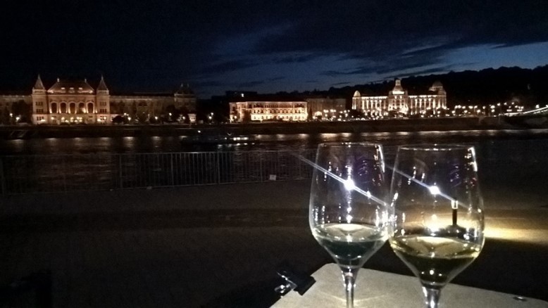 Do naszego apartamentu trafiamy bez większych problemów. Dunaj przedziela Budapeszt na dwie części: Budę- teren pagórkowaty oraz Peszt- teren płaski, nawet bardzo płaski. My mieszkamy w Peszcie w dzielnicy IX- nie całkiem w centrum, ale ciągle jeszcze w obrębie głównej części miasta. Chwila wytchnienia i idziemy coś zjeść. W mieście natrafić można na wszystkie kuchnie świata, piszą nawet, że serwują tradycyjną kuchnię węgierską, ale poza gulaszem niewiele węgierskiego mają w ofercie. Ponieważ jesteśmy głodni, nie szukamy długo, tylko decydujemy się na jeden z wszechobecnych hummus barów- tanio i dobrze. Z pełnymi żołądkami udajemy się nad Dunaj. Ślicznie jest- mosty i budynki w oddali robią wrażenie. Przy nadbrzeżu mnóstwo kafejek z leżakami, można też od razu przy zamówieniu dostać koc. Powoli zaczyna się robić ciemno, więc kulturalnie wykładamy się na leżakach, zamawiamy tokaj- w końcu nie jesteśmy tu dla przyjemności- spróbowanie tego trunku to wręcz obowiązek. Tokaj smakuje- zarówno w wersji sweet jak i dry.