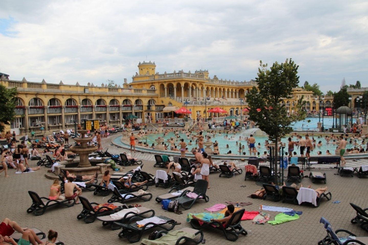 Wysiadamy na stacji Szechenyiego i pierwsze nasze kroki kierujemy w stronę kąpieliska o tej samej nazwie. Jeden z największych kompleksów kąpielowych w Europie korzysta z wód termalnych o temperaturze ponad 70 st. Są tu baseny kryte, odkryte, ciepłe i zimne. Na pewno atrakcją są wbudowane szachy, w które grają panowie mocząc się w wodzie. Ceny za wstęp ok. 60 PLN za cały dzień. Niestety nie mamy tyle czasu, żeby się pomoczyć. Fajnie by było przyjechać tutaj z dziećmi w zimie. Te parujące obłoki muszą robić wrażenie.