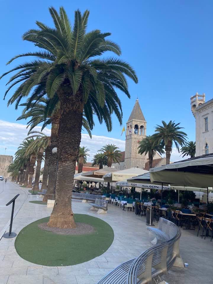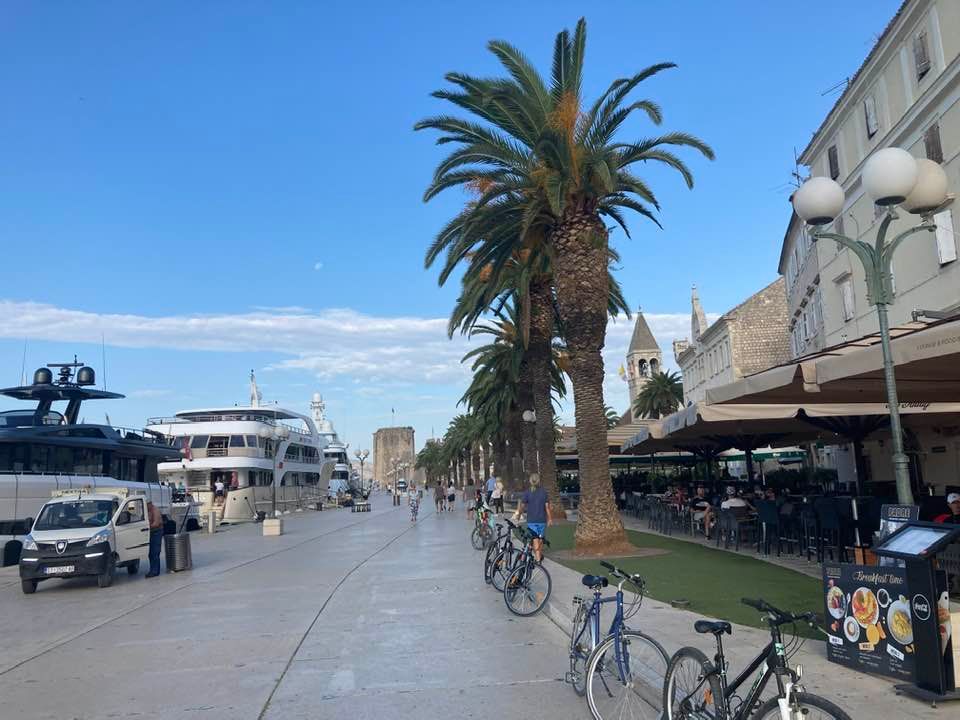 Trogir jest piękny. Ale tylko wtedy, kiedy nie ma ludzi. Czyli wczesnym rankiem. Albo po sezonie. Potem zaczyna się siwy dym i chcesz uciekać jak najdalej. Miasteczko portowe. Jachty sprzątane przez służbę ze złotymi wejściami na schodki. Przepych niesamowity. Ale dużo też takich pomniejszych stateczków, tworzących klimat. Przepiękna starówka- wszystko w kamieniu. Wąskie uliczki, warownia/twierdza z XV wieku, klimatyczne kawiarenki, ogromny targ ze wszystkim. Na 2-3 h z kawą i zapatrzeniem się.