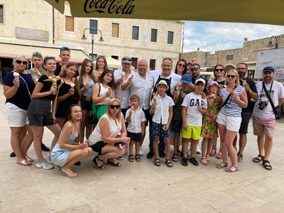 Primosten zaprasza już z drogi dojazdowej. Na punktach widokowych nie możesz oderwać oczu. Promosten to dla mnie pan Śmieszek. Pan, który robi najśmieszniejsze i największe lody na świecie. Pan, którego dzieci nie są w stanie nie pokochać. Dorośli też dostają swoją wersję (dla mężczyzn często cycata ta wersja!). I wszyscy zadowoleni. Pana Śmieszka odwiedzamy nie po raz pierwszy. I za każdym razem robimy sobie wspólne zdjęcie. I zimą wracamy z uśmiechem do smaku lodów i pełni słońca.