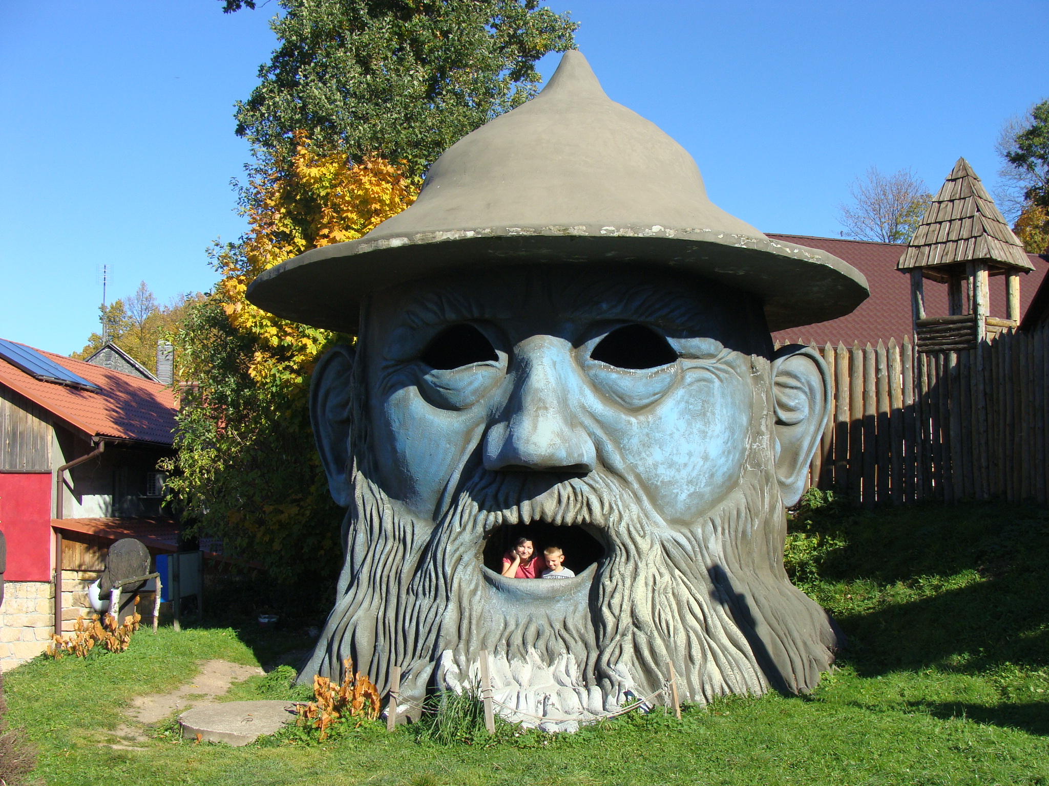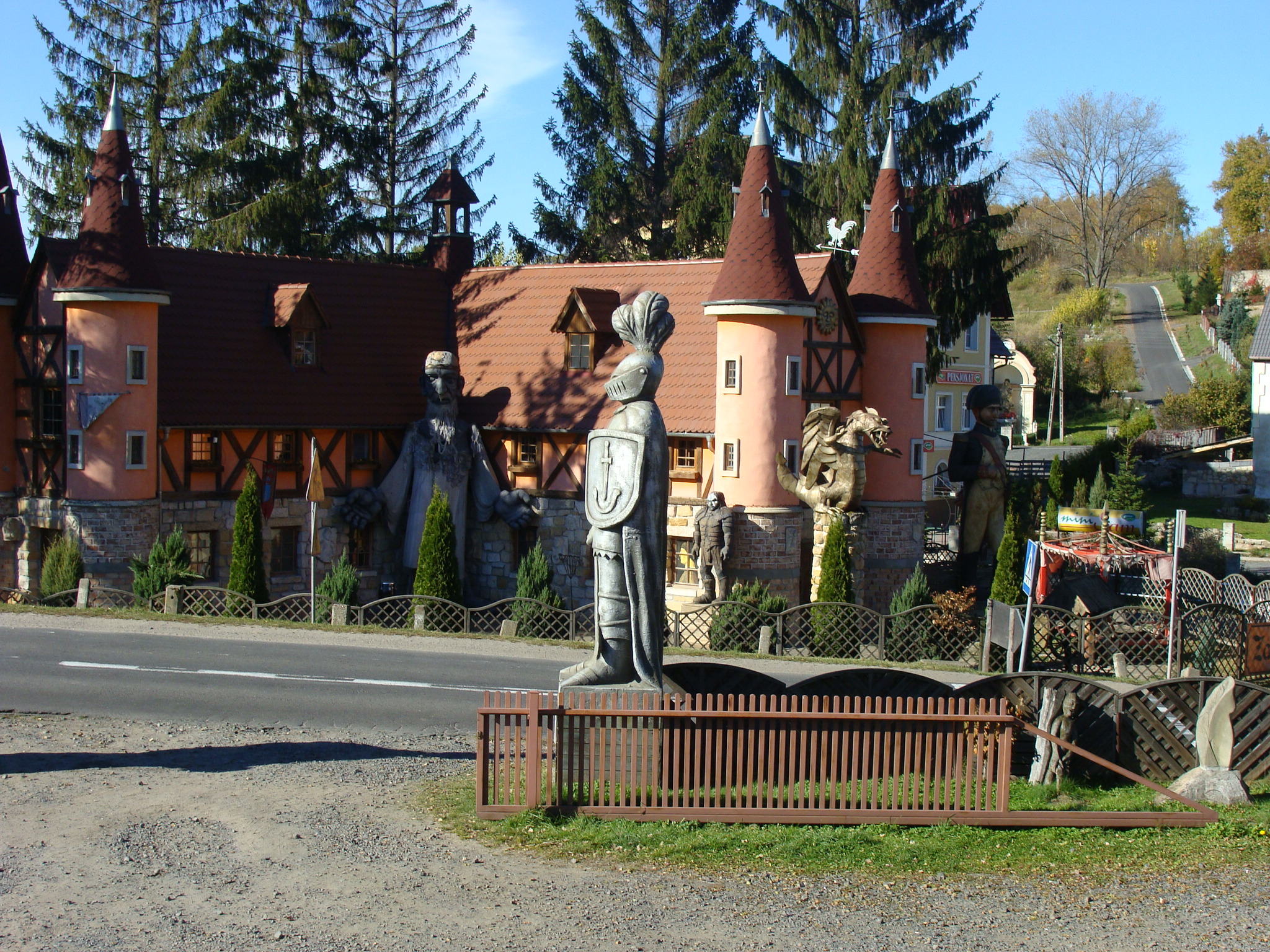 Dariusza Milińskiego- człowieka, który tworzy w Pławnej Zamek Śląskich Legend spotkać można latem nad naszym jeziorem Głębokie. U nas też tworzy. A tam stworzył bajkowe miejsce. Warto zobaczyć z dziećmi i w środku i na zewnątrz. Bo w środku kukiełki i wystawa bajkowych obrazów pana Milińskiego, a na zewnątrz różne bajkowe figury wielkości na tyle odpowiedniej, że można wejść do środka. Rewelacyjna przerwa w drodze powrotnej w góry.