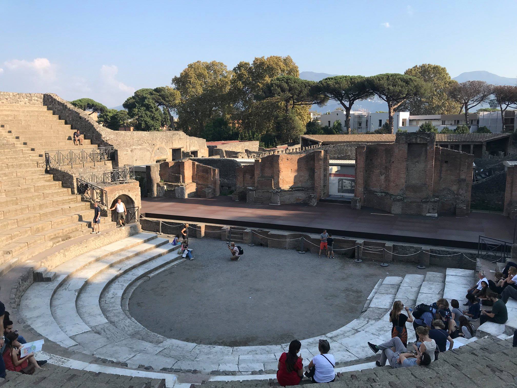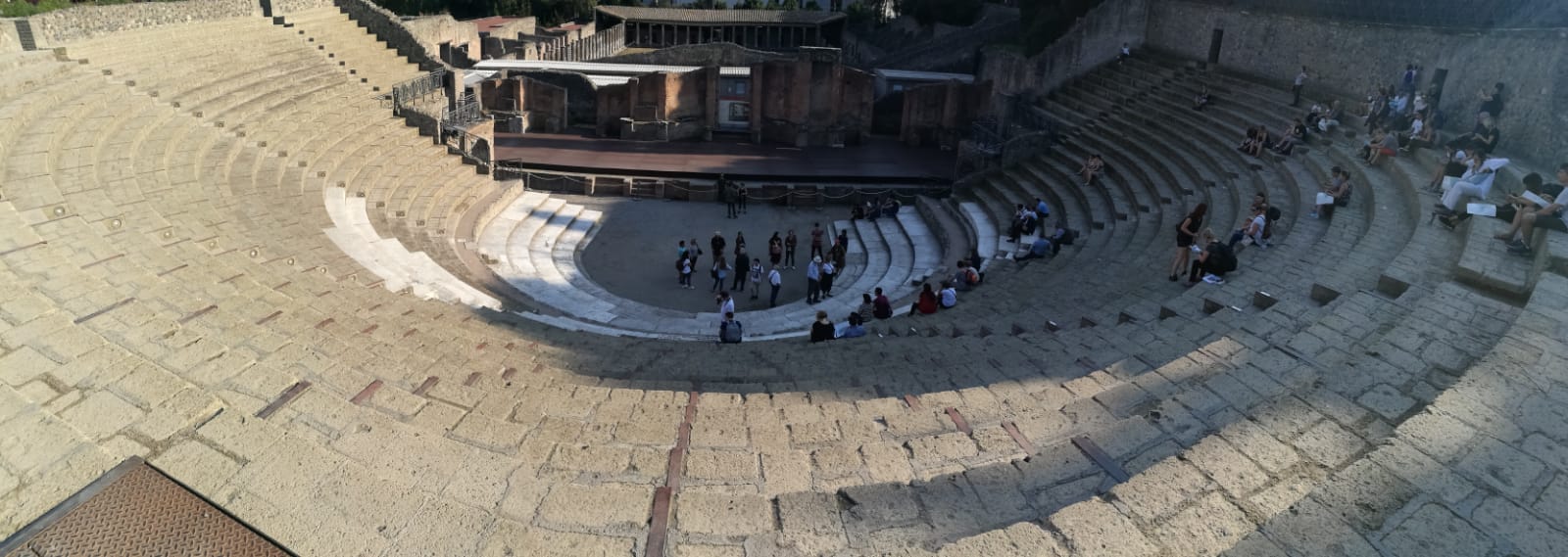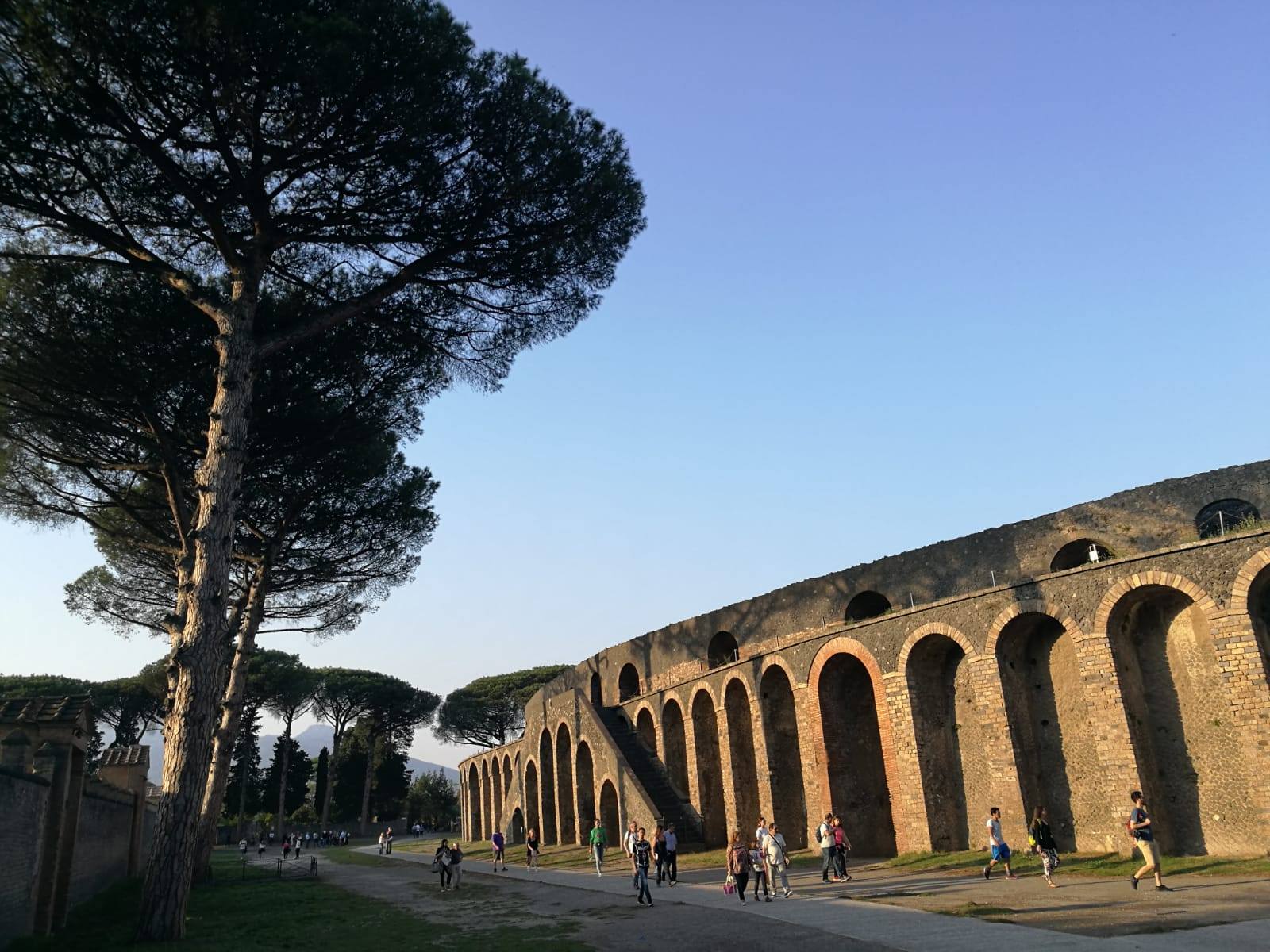 W Pompejach znajduje się najstarszy istniejący teatr na świecie . Był w stanie pomieścić 20 tys. osób, tak więc na widowiska przyjeżdżali również ludzie spoza Pompejów. No i dochodziło regularnie do burd pomiędzy widownią pochodzącą z różnych miejscowości… Amfiteatr znajduje się na obrzeżach, aby walki „kiboli” nie zakłócały spokoju mieszkańców:)