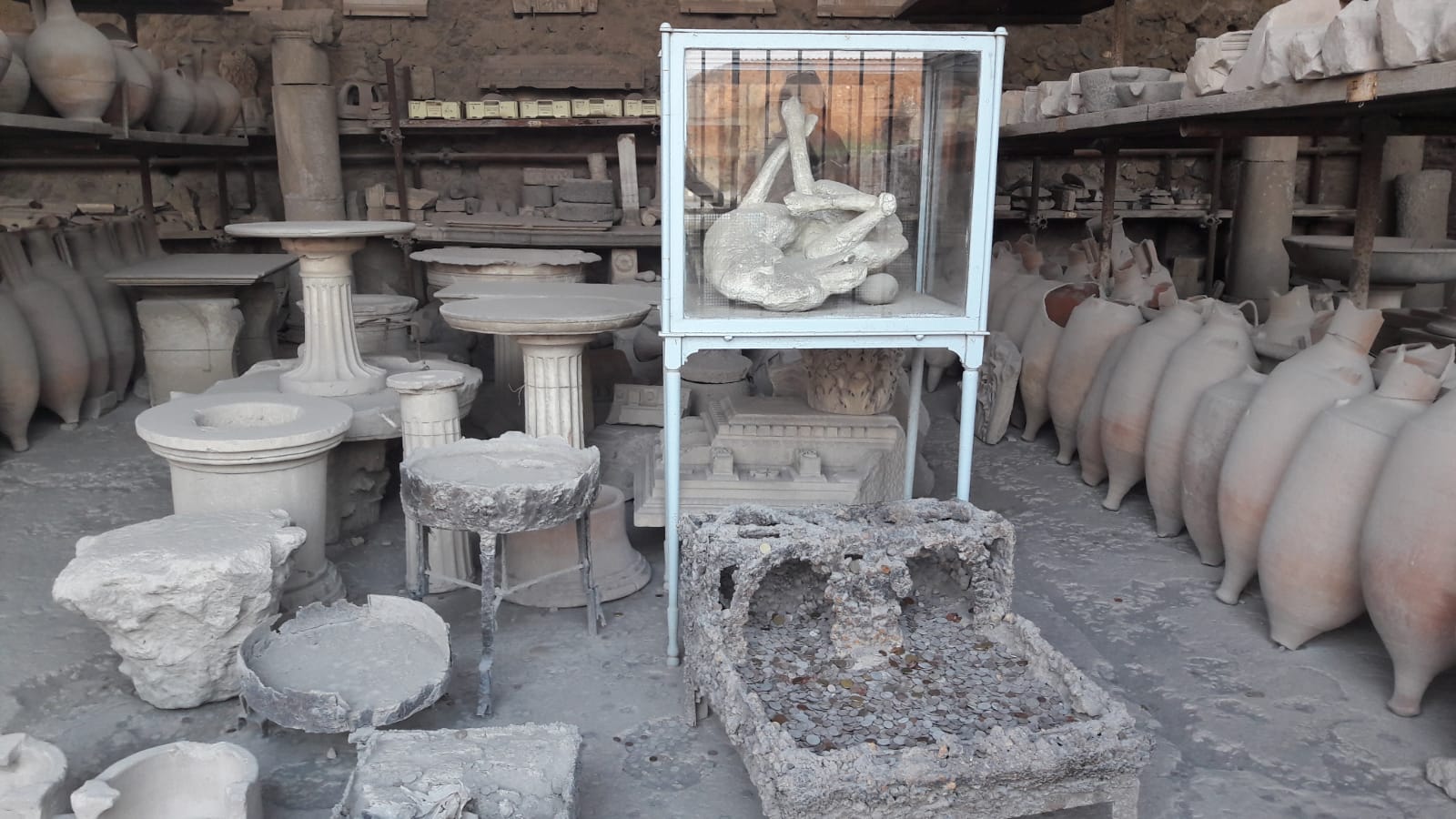 Eksplozja była tak niespodziewana, że zatrzymała w czasie ludzkie życia zastygłe w przedziwnych pozycjach. Przez wieki szczątki ofiar uległy naturalnemu rozkładowi, pozostawiając po sobie pustą przestrzeń wewnątrz popiołu, ziemi i kamieni. Archeolodzy wpuścili do zastygłej luki płynny gips i w ten sposób utworzyli odlewy ciał, które kiedyś się tam znajdowały- świadectwo straszliwej historii. Odlewy można zobaczyć i w Pompejach i w Muzeum Archeologicznym.