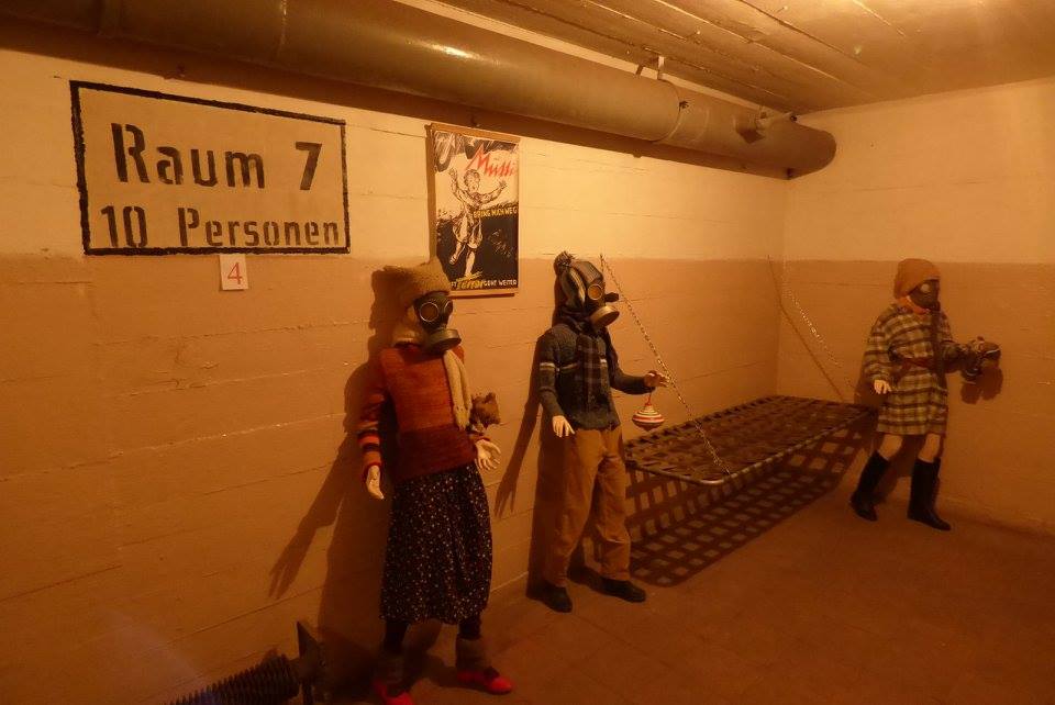Nasz pan przewodnik jest również aktorem. A na „dzień dobry” wyją syreny i mamy alarm bombowy. Wiecie co to oznacza dla dzieci? Myślę, że wspomnienia do końca życia. Wchodzimy w historię. w naszych butach i na naszych nogach. Tak powinno się dzieciom tłumaczyć przeszłość.  Za chwilę w środku gaśnie światło i w pewnym momencie możemy poruszać się tylko dzięki temu, ze ściany pokryte były częściowo farbą fluoroscencyjną. Poznajemy historię najbliżej, jak można ją poznać- dotykając. Przeżycie i dla dorosłych i dla dzieci. I każdy powinien się tam udać, żeby wiedzieć.