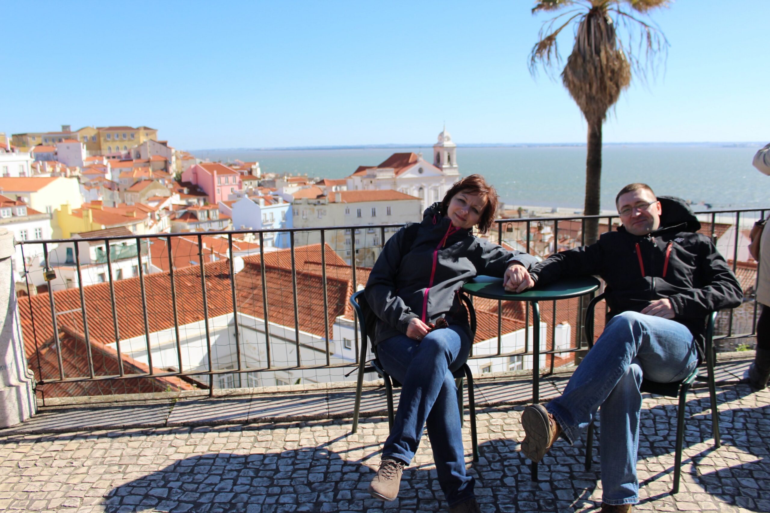 Czego jeszcze nie można sobie odmówić? Odwiedzenia i zatrzymania się na dłużej na miraduros, czyli punktach widokowych. Okolica cała jak na dłoni. W szczególności ten jeden jest wart posiedzenia na nim – Miradouro das Portas do Sol- Bram Słońca. I to tam po raz pierwszy zakosztowaliśmy herbaty z zieloną trawą. I śpiewaliśmy piosenki Anny Marii Jopek o Lizbonie właśnie.