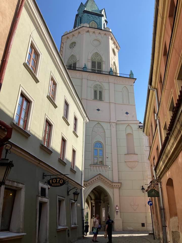 A zabytki? A spójrzcie tylko na Zamek Królewski. W ogóle tak nie wiedząc, że to tam i że to on można sprzedać go jako miejsce orientalne. To w nim obradował sejm, kiedy podpisywano Unię Lubelską. Chodząc jego korytarzami, które przypominają to wydarzenie, dochodzimy do Kaplicy Trójcy Świętej- tu gdzie zachód spotyka się ze wschodem. Cała pomalowana malowidłami bizantyńsko- ruskimi. Piękna. I jak już tam wejdziemy, to trzeba też wspiąć się wyżej na donżon- wieżę, na której szczyt trzeba wejść po spiralnych- a jakże – schodach. Nagrodę dostajemy natychmiast- Lublin je nam z ręki