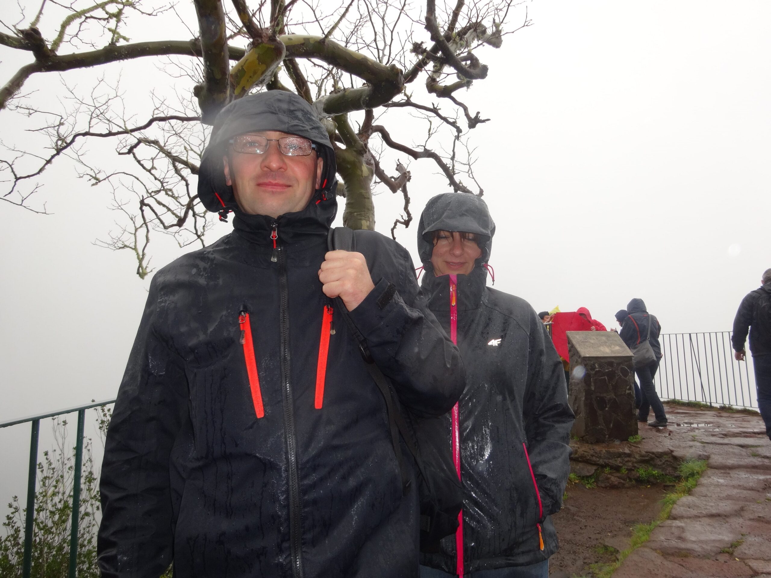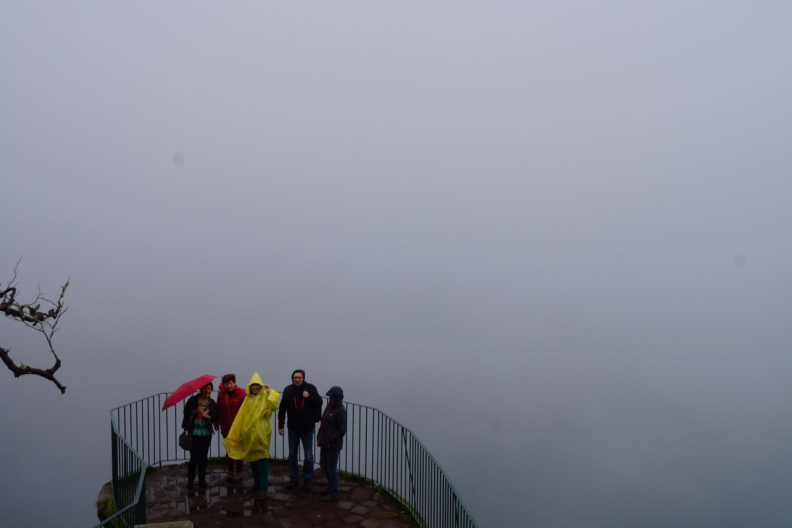 Pierwsza z lewad zaprowadziła nas do Balcoes. Wyjazd busem na drugą stronę wyspy i główny cel naszej wyprawy- najpiękniejszy punkt widokowy na wyspie. Wyjeżdżamy- słońce, potem coraz mniej go, w końcu znika. Przy wejściu na lewadę leje już bardzo, ale w końcu po to tutaj przyjechaliśmy. I doszliśmy do celu: uchachani, przemoczeni doszczętnie. Nie było szans zobaczyć cokolwiek, nawet barierkę ochronną ledwo, ledwo. Ale oczami duszy…. Widzieliśmy wszystko. Hasło „Balcoes” wywoła na naszych twarzach już zawsze szczery uśmiech.