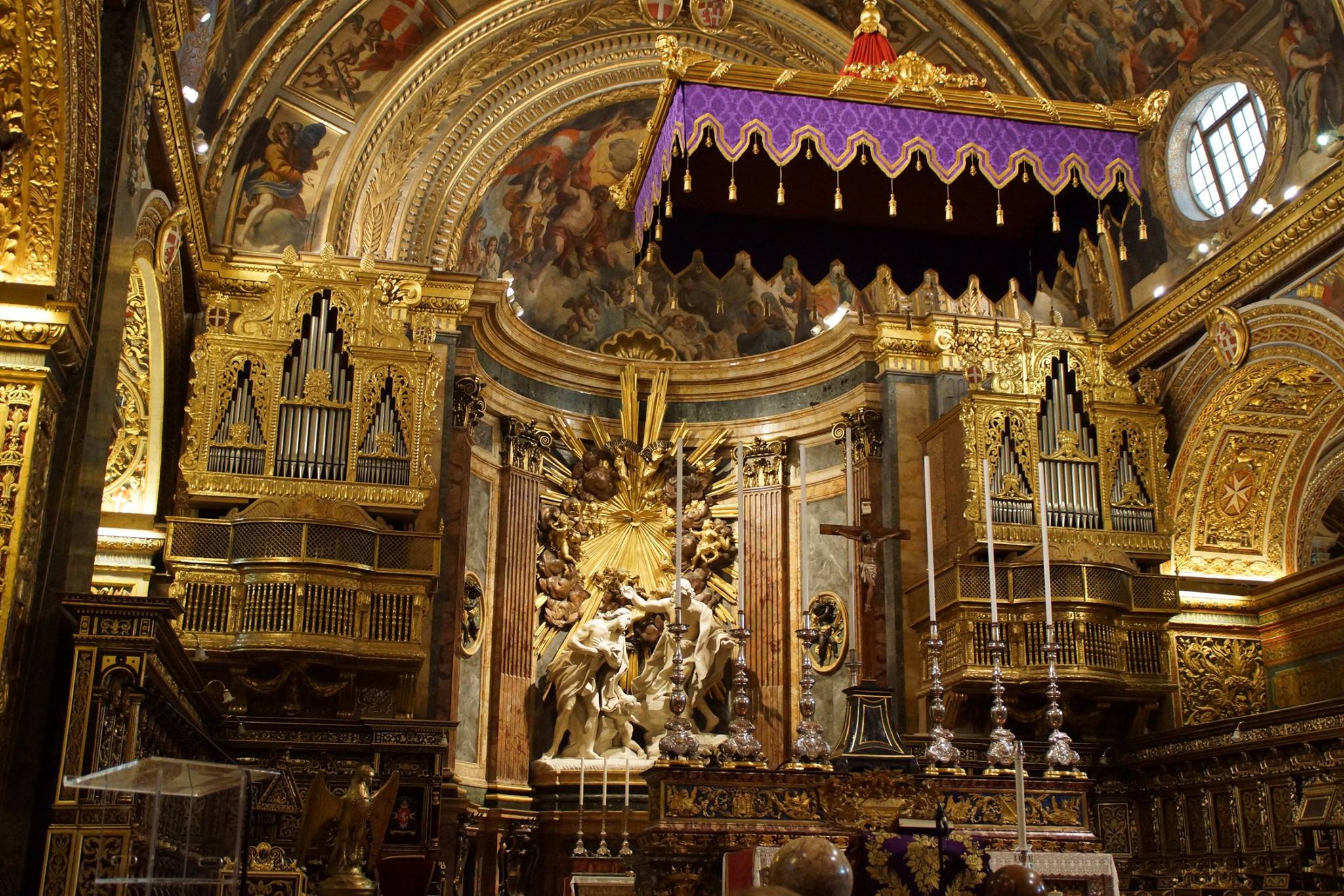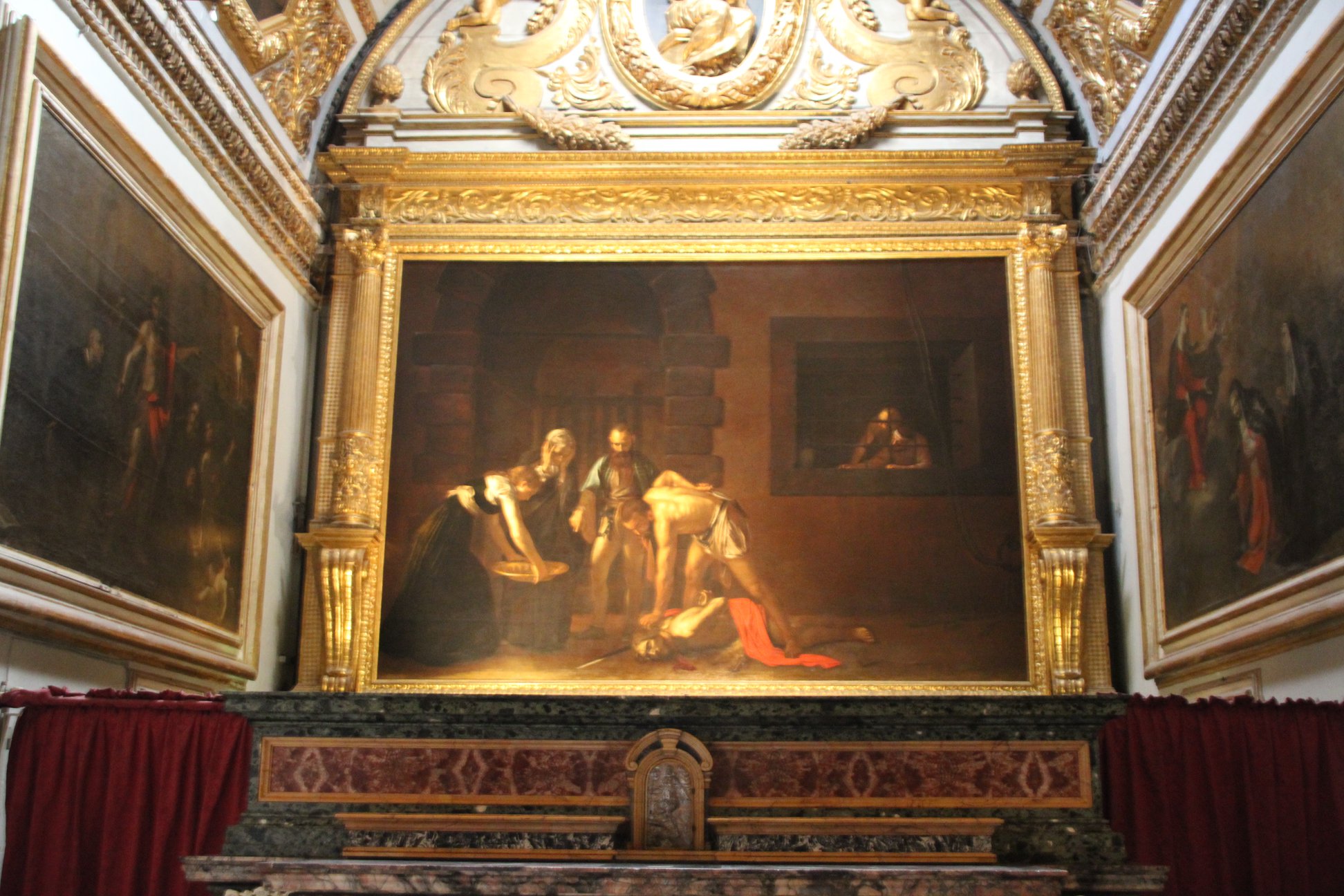 Do katedry przylega oratorium- prywatna kaplica Wielkich Mistrzów. Tutaj znajdujemy perełki, dla których wielu decyduje się odwiedzić katedrę- swoiste muzeum. Caravaggio- przestępca poszukiwany na świecie za pobicie ze skutkiem śmiertelnym znalazł schronienie w zakonie i w ramach chwilowej bezczynności w zakresie rozrabiania namalował najsłynniejszy obraz ogromnych rozmiarów – Ścięcie św. Jana, który umieszczono właśnie tam. To trzeba zobaczyć! Tym bardziej, że za dużo się chłop nie namalował, bo znowu narozrabiał i musiał uciekać z wyspy…