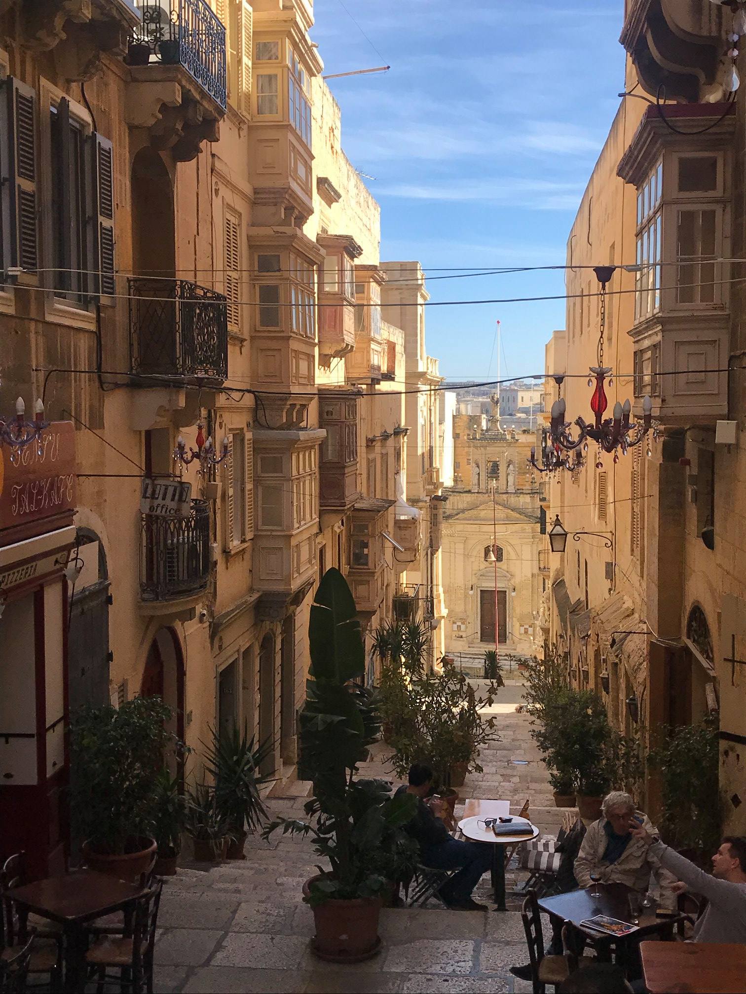 Valletty przemieszczamy się w poszukiwaniu miejsca na dobrą obiadokolację. Wchodzimy w maltańskie ulice, gdzie toczy się normalne, codzienne życie. Trochę to wścibskie, ale jak już tam jesteśmy, to czemu nie…Powoli zapalają się światła w klimatycznych knajpkach i kafejkach. Poznajemy Vallettę w zupełnie innym świetle. To był uroczy dzień.