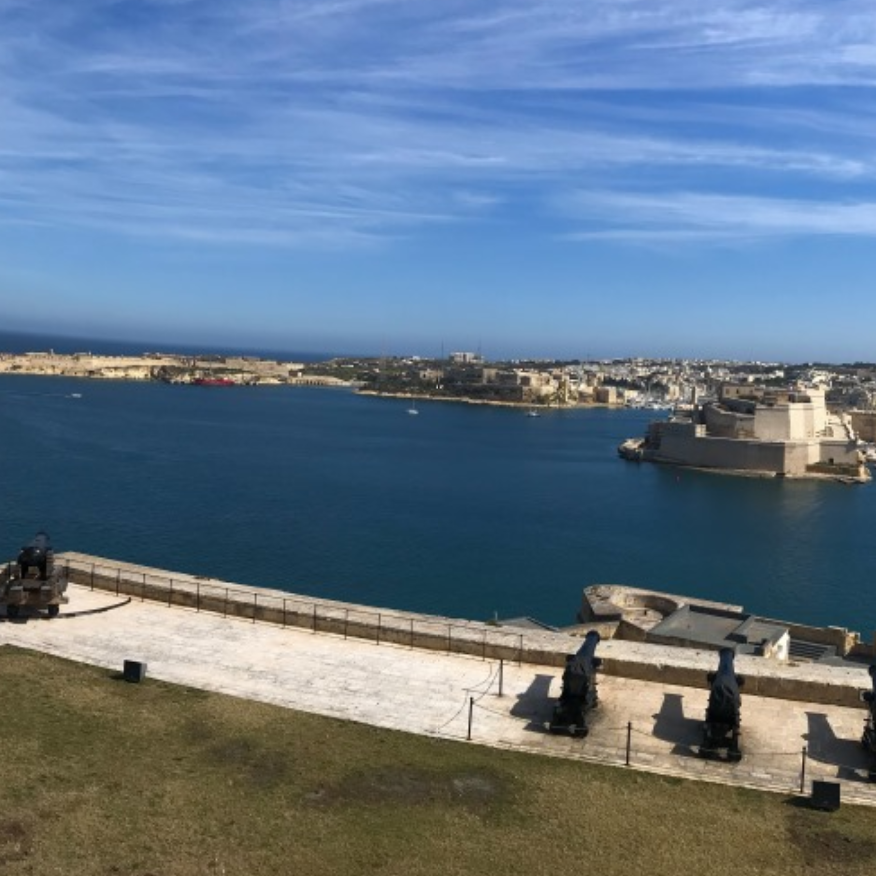 Zwiedzanie zajmuje nam dobrą godzinę, a po wyjściu- natchnieni sztuką kierujemy się w stronę Ogrodów Bakkara. Valletta jako miasto obronne ma mało zieleni, dlatego takie miejsca cieszą się dużą popularnością. Można przysiąść, napić się kawki i nacieszyć słońcem. A to, czego z pewnością nie zapomnisz, będąc w ogrodach, to oszałamiające widoki na morze, zatokę Grand Harbour oraz usytuowane naprzeciw Valletty trzy miasta. Znajdujemy na jednym z filarów akcent polski- płytę upamiętniającą naszych marynarzy, którzy zginęli w 1942 roku na ORP Kujawiak wpływając na minę.