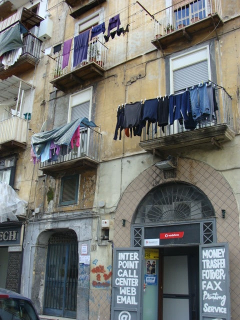 Drugie wrażenie to zadowolenie. Zadowolenie z faktu, że nie przyjechaliśmy tutaj samochodem. Jak oni jeżdżą? Wszystko przecież poobijane. I to porządnie. No i jeszcze nasz hotel. Spoko, ale w jakimś dziwnym miejscu. Bo w nocy jakby strzały było słychać. A w murach budynków wmurowane kapliczki, a w centralnym miejscu zdjęcia osób, które zginęły. Świeże kwiatki. Dziwne to wszystko. A i jeszcze wszechobecne pranie. Biorąc pod uwagę jego ilość Włosi to musi być bardzo czysty naród.