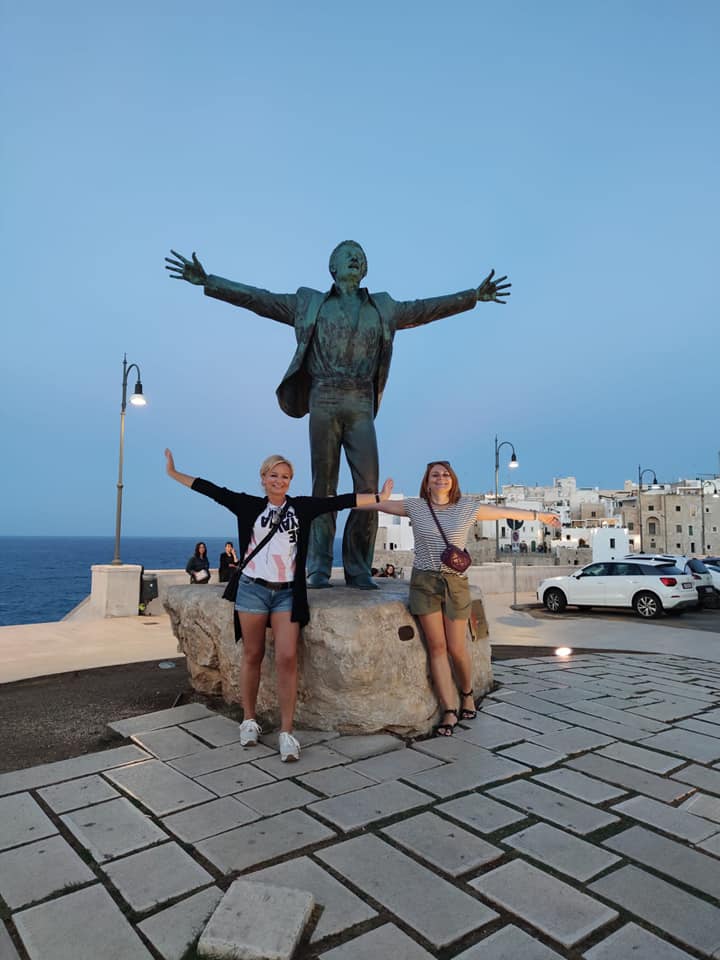 A wiecie może kto to był Dominico Modugno? Nie wiecie, że wiecie haha. Przed wyjazdem też nie wiedziałam. A to mieszkaniec Polignano, który wyśpiewał światu słynne ” Valare oo” https://www.youtube.com/watch?v=qivzSaALee8 No i jak tu nie pójść pod jego pomnik i nie zaśpiewać razem z nim? Inni też sobie podśpiewywali. Piękne to było.