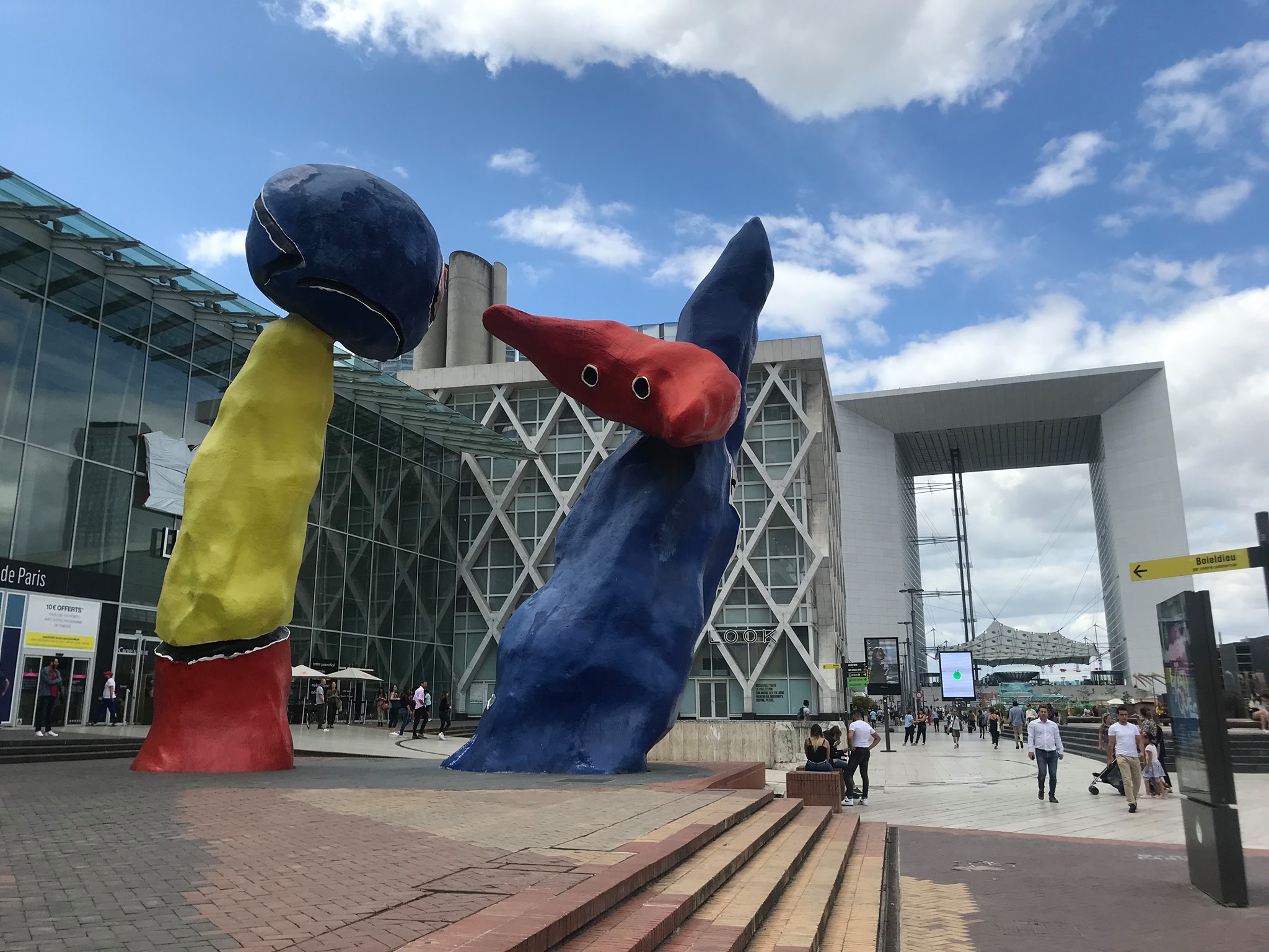 Dookoła wysokie i różnorodne wieżowce, a na samym końcu najciekawszy – Grande Arche, czyli Wielki Łuk. Powstał w wyniku konkursu ogłoszonego przez prezydenta Mitterranda na nowoczesną wersję Łuku Triumfalnego. Tym samym historyczna oś miasta, na której znajdują się Luwr- Pola Elizejskie- Łuk Triumfalny została doskonale zamknięta właśnie przez tą osobliwą budowlę.