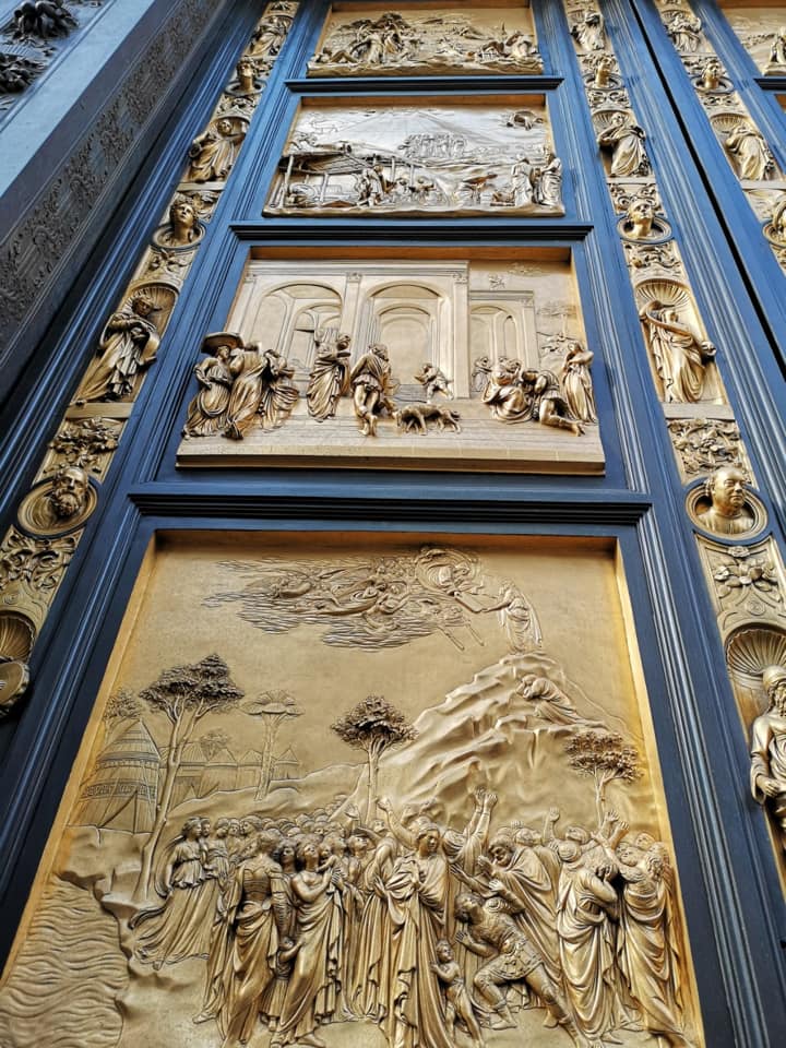Przed katedrą Matki Boskiej Kwietnej znajduje się budynek baptysterium. To miejsce, gdzie odbywały się chrzty. Starsze niż Katedra. We wnętrzach- kilka bardzo starych grobowców, ale najważniejszym z punktu widzenia historii sztuki elementem budowli są… drzwi. Drzwi Raju- pozłacane drzwi ze scenami ze Starego Testamentu.