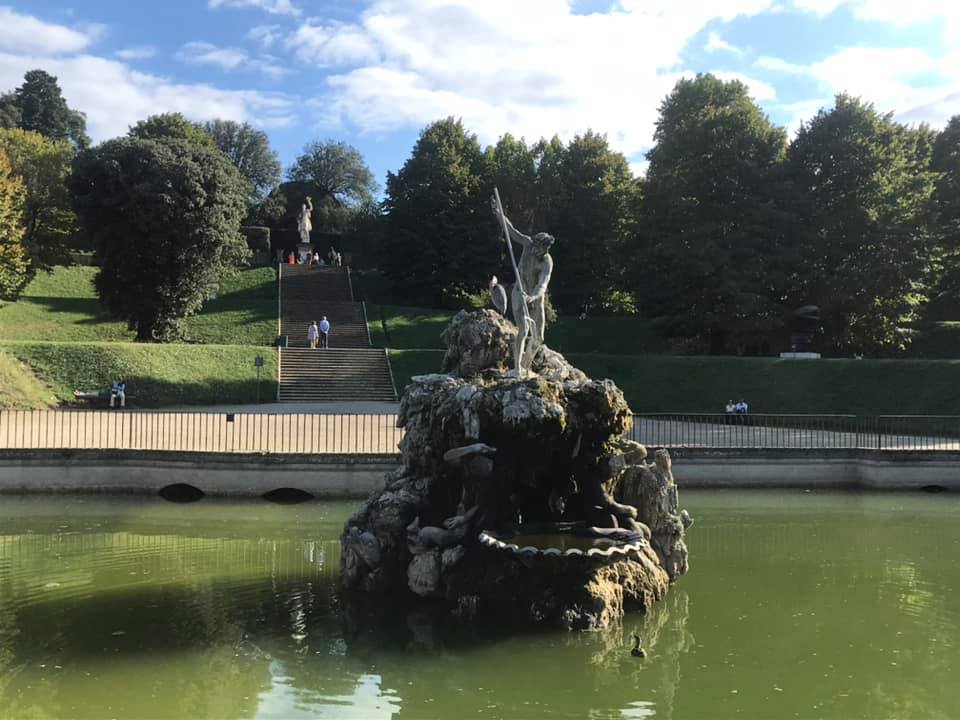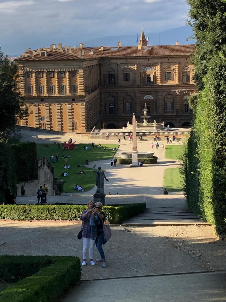 Idziemy dalej w stronę Pałacu Pitti- to druga bardzo ważna i majętna rodzina florencka. Równa dumą i ambicjami Medyceduszom, ale niestety nie dali im rady. Przepiękny i przeogromny Pałac, a plac przed nim aż prosi się, żeby na nim poleżeć i pogapić się na ludzi. Słońce rozleniwia ewidentnie. Musimy się podnieść, bo przed nami ogrody Boboli. Takie bardzo włoskie. To znaczy bardzo naturalne miejscami chciałoby się powiedzieć haha. Marzy nam się kawa. Na planie ogrodów znajdujemy Kaffeehaus, więc idziemy podelektować się włoskim naparem. Jak się okazuje nazwa wcale nie musi oznaczać, że będzie tam kawa. Ba- nazwa wcale nie musi oznaczać, że będzie można tam kupić cokolwiek do picia. Ehh Włosi są cudni… I tacy dwuznaczni…