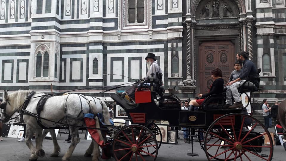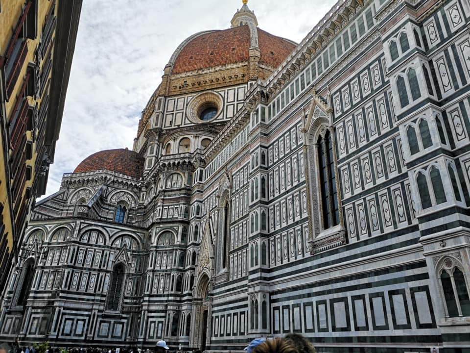Nasz pierwszy przystanek to Katedra Santa Maria del Fiore (Katedra Matki Boskiej Kwietnej). Największy zabytek miasta. Powalający wielkością- 153 metry długości, 38 metrów szerokości i aż 90 metrów wysokości. Powstała wokół istniejącego kościoła, w którym pomimo trwającej budowy jeszcze przez około 80 lat odprawiane były msze.