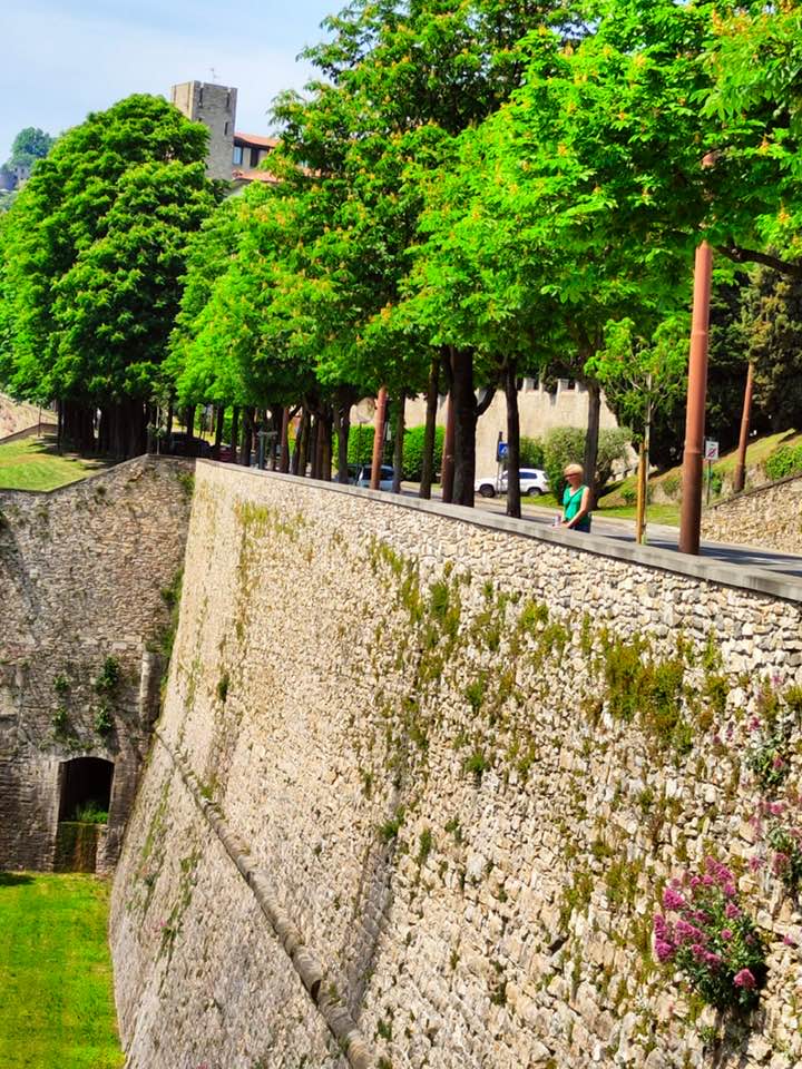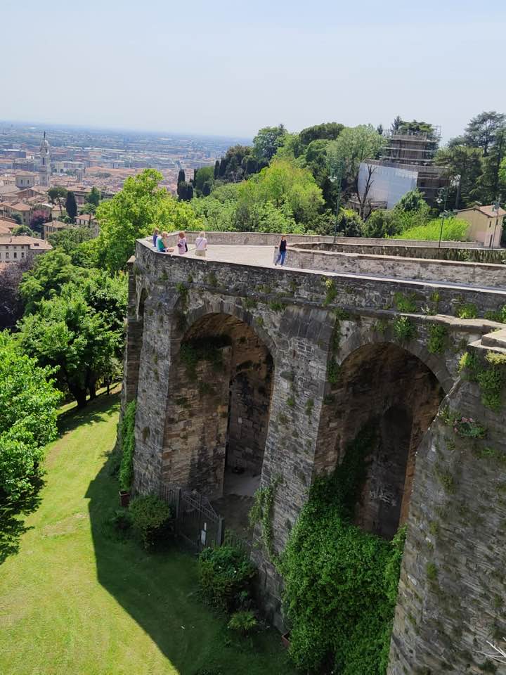 Całe stare Bergamo otaczają Mury Weneckie. Żeby je wybudować (a mówimy o XVI w) trzeba było wyburzyć 250 budynków i świątyń. Całość wpisane na listę UNESCO. A dziś to wspaniała trasa widokowa. Ach używałyśmy, używałyśmy i widoków i używek płynnych haha. Rozlane  na Murach Weneckich przy zachodzie słońca smakują podwójnie😊