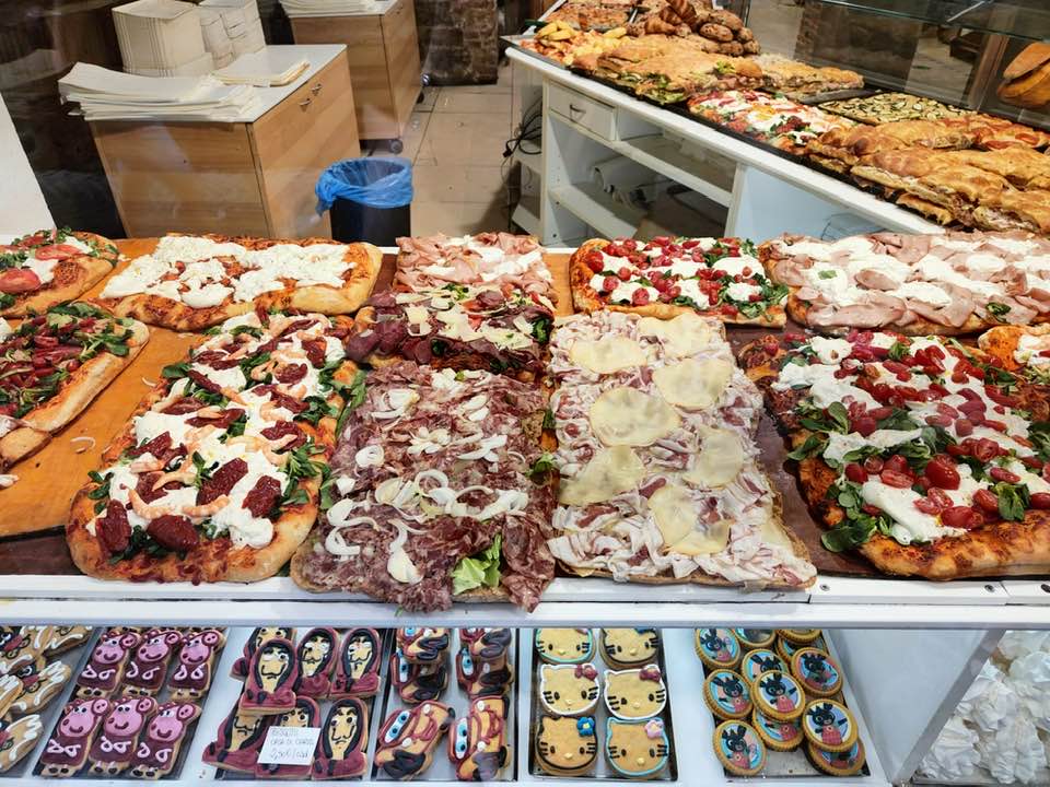 No to idziemy jeść. I mamy polecajkę. Miejsce zazwyczaj oblegane bardzo. Il Fornaio przy via Colleoni i pizza na metry w przystępnej cenie krojona nożyczkami. Smak rewelacyjny!