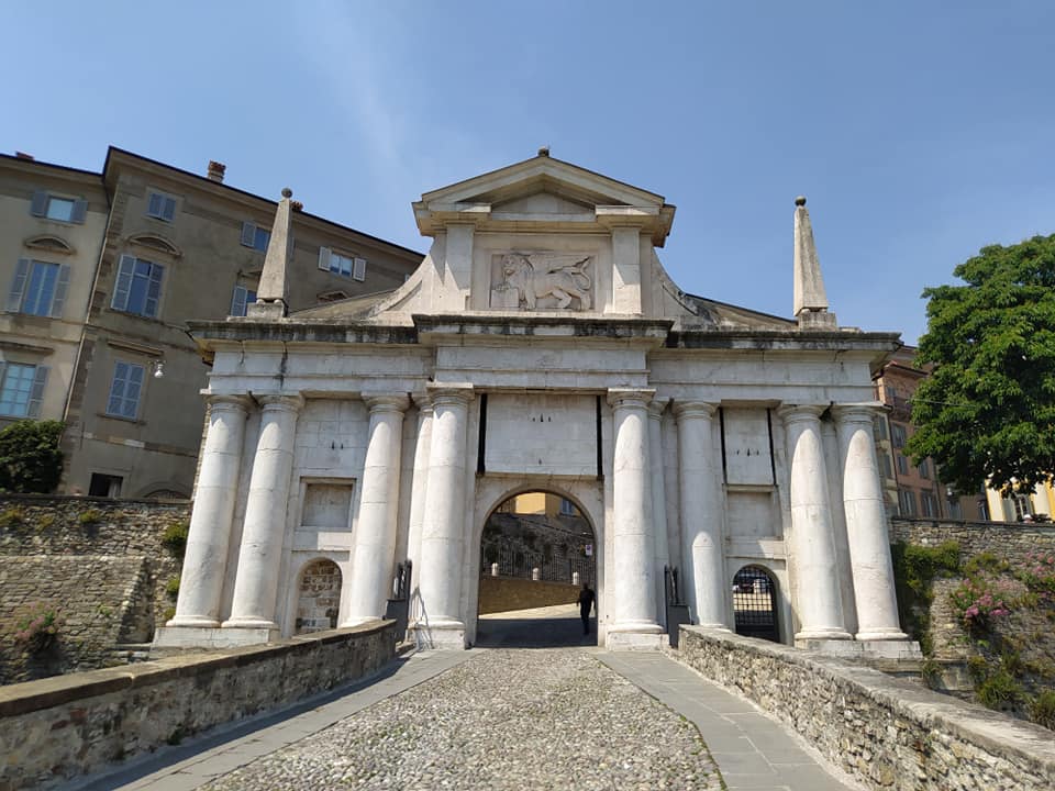 Po wyjściu z kolejki idziemy sobie powolutku w lewo i dochodzimy do jednej z czterech bram miasta- bramy św. Jakuba (Porta San Giacomo). Nie przejedzie przez nią żaden samochód, za ta jak ją przekroczysz Bergamo je Ci z ręki. Dopiero teraz widać, że miasto porównywalne wielkością do Gorzowa (120 tys. mieszkańców) wcale nie można do niego porównać. I tak sobie pięknie wędrujemy dalej, promenadą nadrzeczną aż do starego miasta.