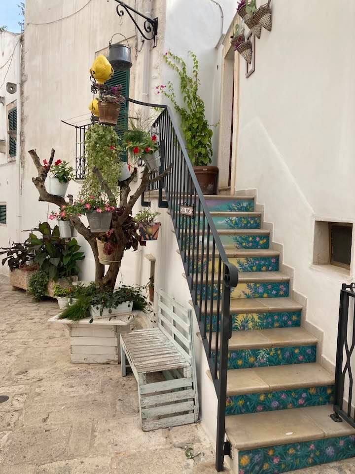 Locorotondo to miasteczko położone całkiem niedaleko Alberobello. Jest okrągłe -stąd to rotondo. Jest oczywiście białe, ma ładne zaułki w sam raz na dobra kawkę. I sprawia wrażenie super spokojnego. I tyle. Nie ma tutaj żadnej przewodniej atrakcji, ale za to jest  klimatycznie. I można posiedzieć sobie na pufkach w winnicach i pokosztować wina kosztując widoków. Takie kosztowanie dwa w jednym. Można poszwędać się wąskimi uliczkami wśród kwiatów i ozdobnych sklepików. tak na 2-3 godzinki spokojnego spaceru.